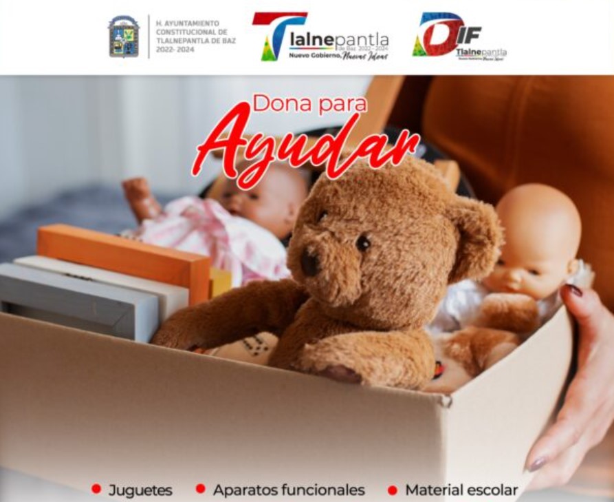 Dando cumplimiento a su labor altruista, el Sistema Municipal DIF de Tlalnepantla que preside María Gómez Martínez lleva a cabo la campaña “Dona para ayudar”, en la que se convoca a la ciudadanía a donar juguetes, aparatos funcionales y material escolar en buen estado.