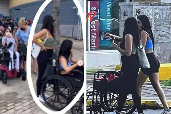 Según imágenes, la joven -acompañada de otra mujer- fueron unas de las primeras personas en lograr entrar al recinto para realizar la transacción y al salir, fueron captadas caminando sin el uso de la silla de ruedas.