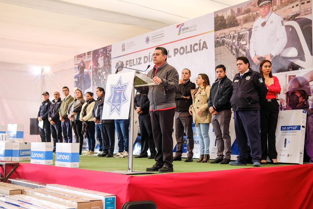 Deseó a los elementos que el próximo año esté lleno de salud, fortaleza y de las ganas de seguir trabajando y prestigiando el gran orgullo de ser elemento de seguridad pública y tránsito municipal de un importante municipio como es Tlalnepantla.